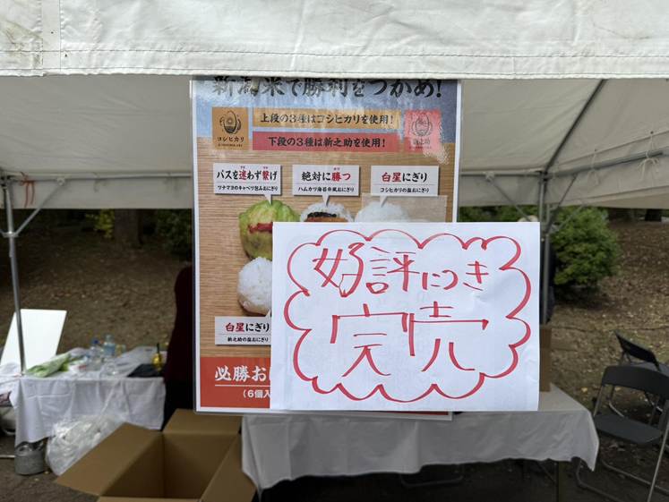 11時から販売開始した「必勝おにぎり」は、長蛇の列ができるほど好評で12時30分頃には完売。200個を約90分で売り切ることができました。