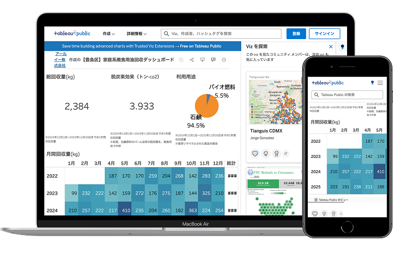 家庭からどのくらいの廃食用油が集まっているのかを、データとして 把握・共有します。 地域ごとの回収量や推移を可視化することで、自治体・住民・企業が 同じ目線で循環の進捗を確認できる仕組みを整えます。