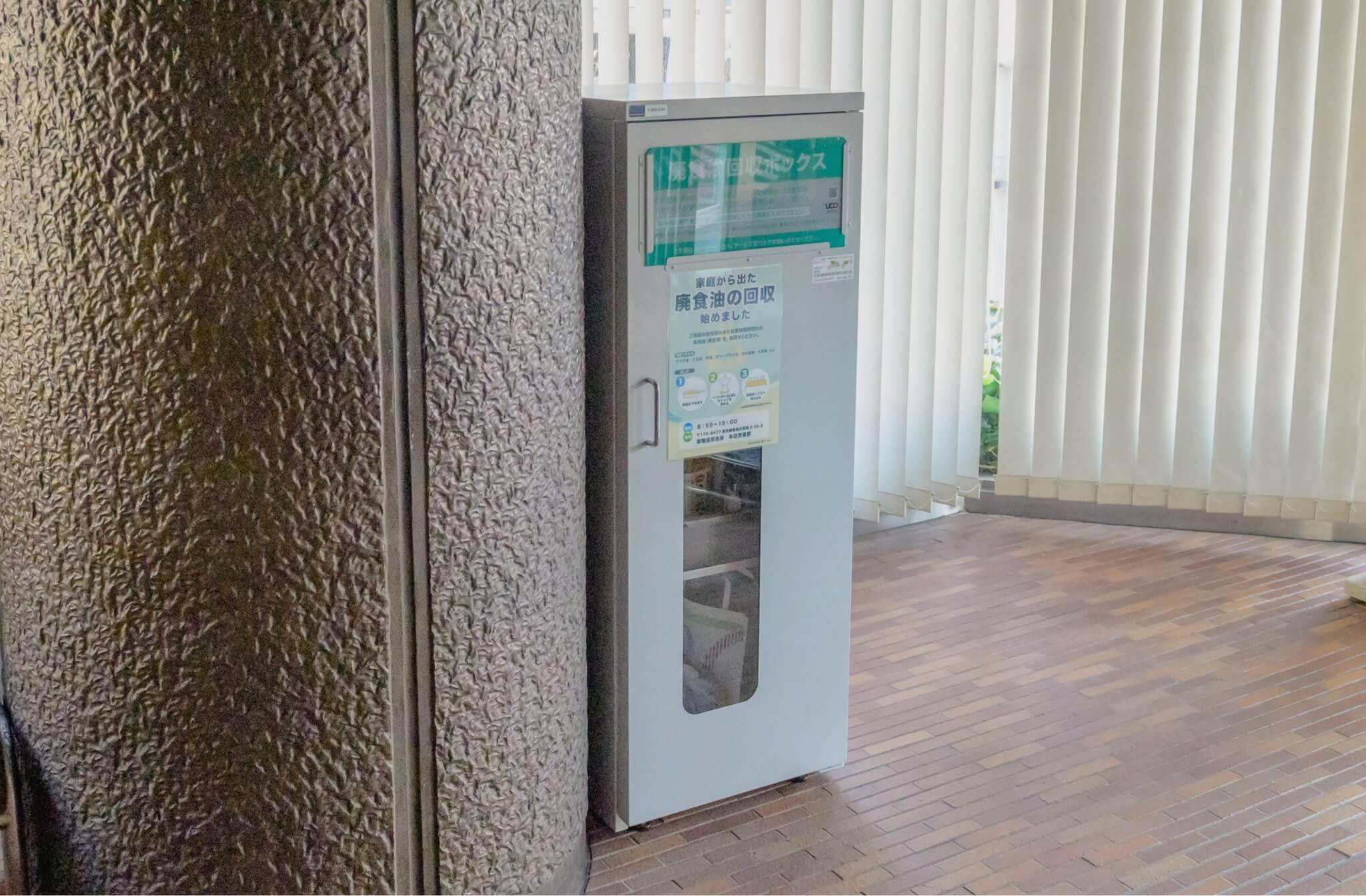 地域の暮らしに寄り添う金融機関である巣鴨信用金庫の店舗では、家庭由来の廃食用油回収ボックスが設置され、地域の方々が日々の生活の延長で、無理なく資源循環に参加できる環境が整えられています。