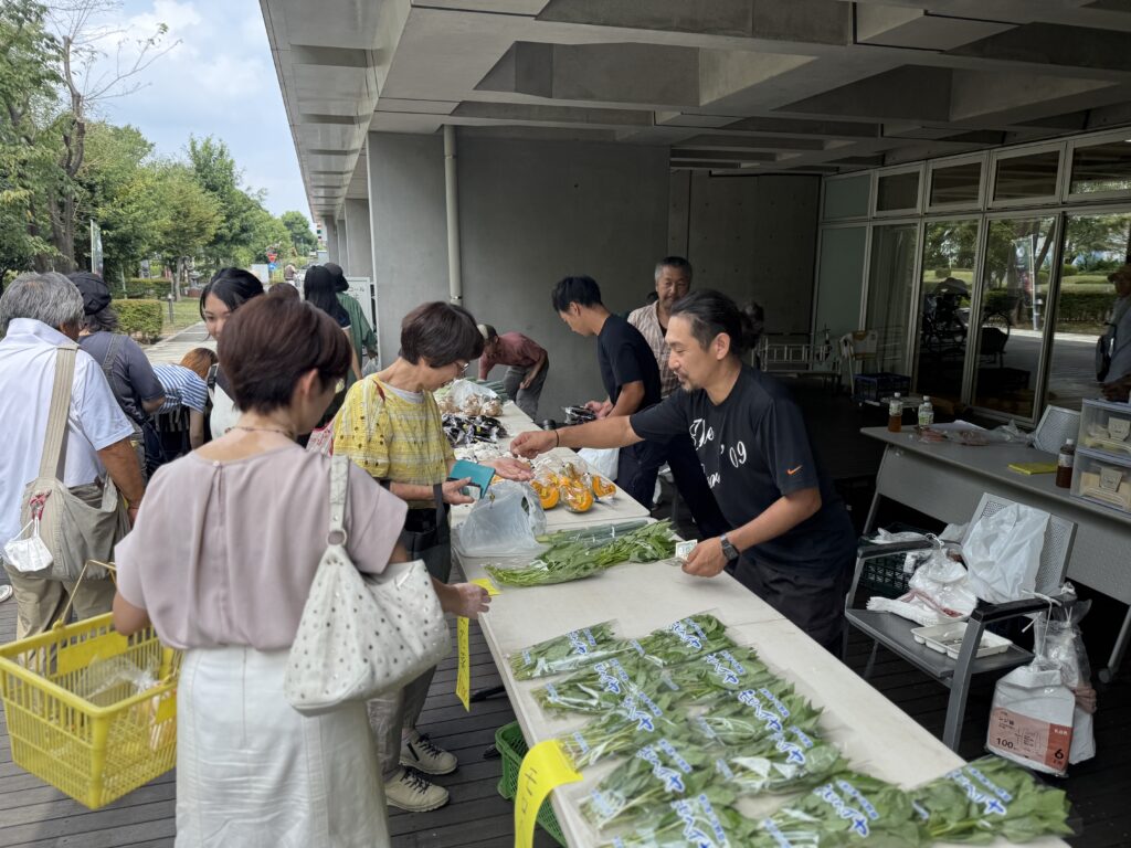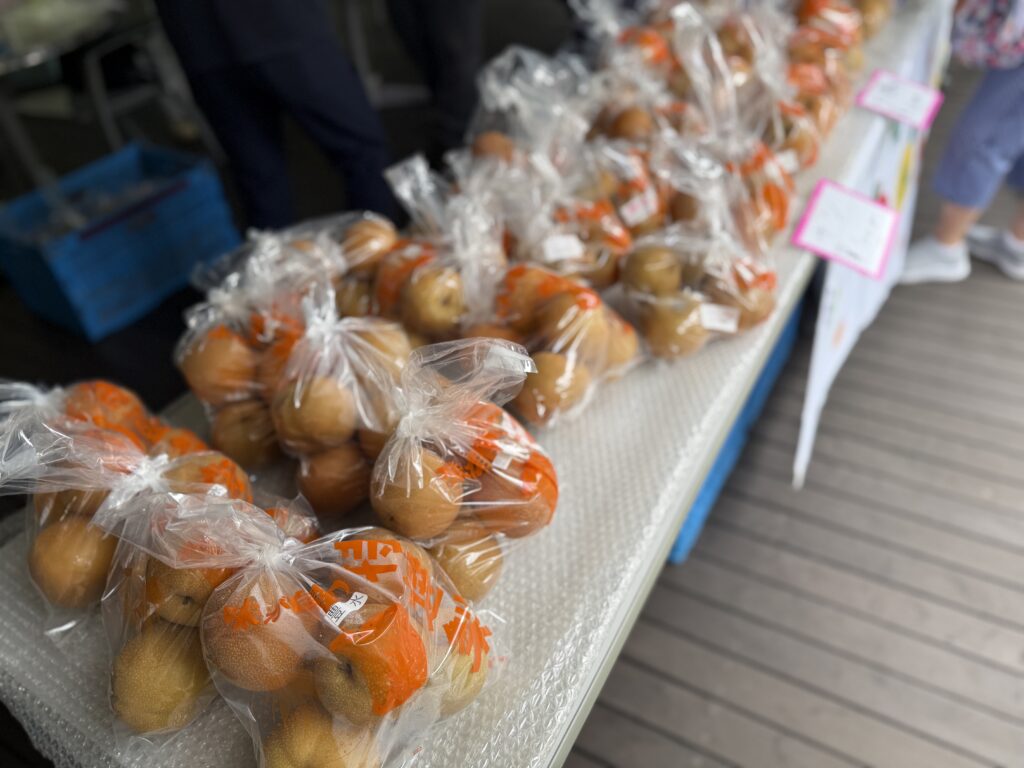 さらに、西側テラスでは立川市果樹組合、立川市農業技術振興会による直売会が同時開催され、こちらにもたくさんの方が地域の産品を購入していました。立川市の市民と農業の近さを物語る印象的なシーンでした。